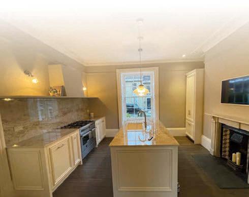 At the rear, bay-windows on all four oors com i e ith attleme ts alo g the roof edge for a feeling of stately eccentricity; this doesn’t just look like a big house, but an important one. You enter via a Victorian extension entrance hall, leading on the left to a music room and the right to a recently refurbished conservatory – but we’re going to ignore them for the moment, and move straight through to the inner hall and the bulk o the grou oor accommo atio . Here adjoining Shaker-style kitchen and breakfast rooms enjoy a mix of wooden
