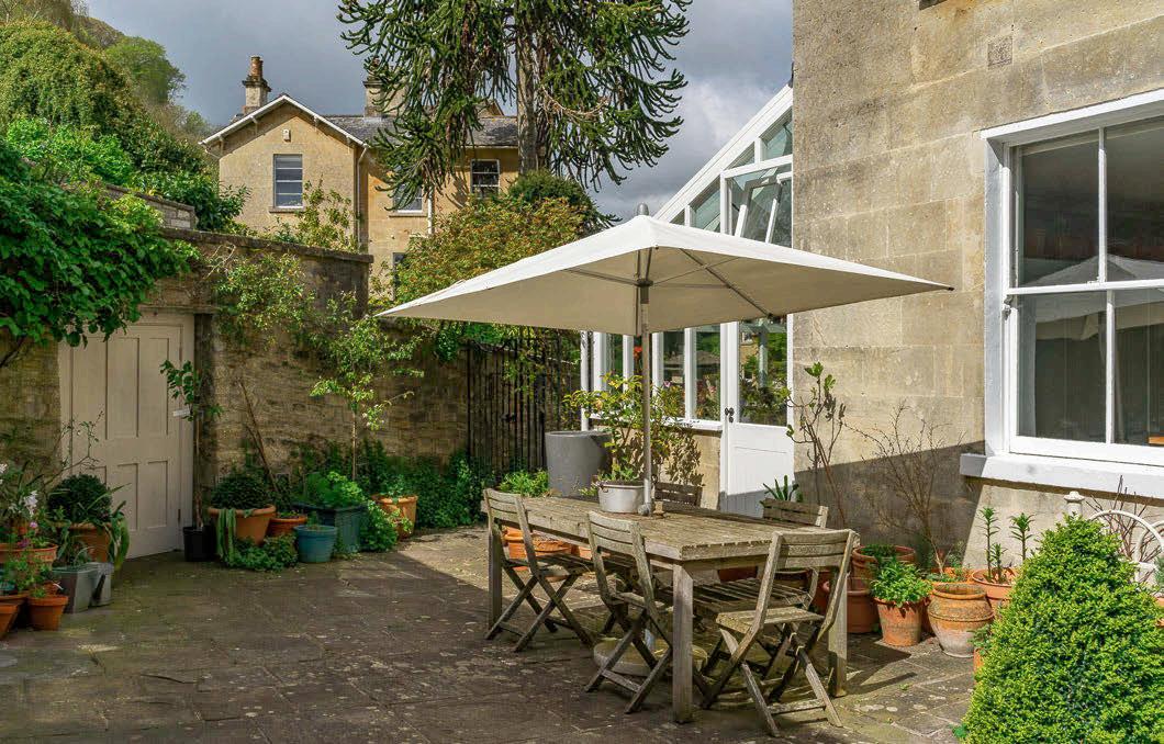 Southcot House is a well positioned, rather vast fourstorey Georgian home enjoying just about the perfect position, a triangular plot of roughly a third of an acre half way up the hill. Elevated yet secluded, it boasts the most incredible views of the Abbey and the crescents beyond over its walled garden and courtyard. Built in 1777 – an intriguing year, with the American revolution i ull o a heri a s The School For Scandal first performed – and extended by the Victorians, it combines e less charmi g perio etail gorgeous fireplaces ecorative plaster or tile a agsto e oors ith all the joys and conveniences of modern living, most of these enhanced by a series of major re ur ishme t e orts over the past te ears.
