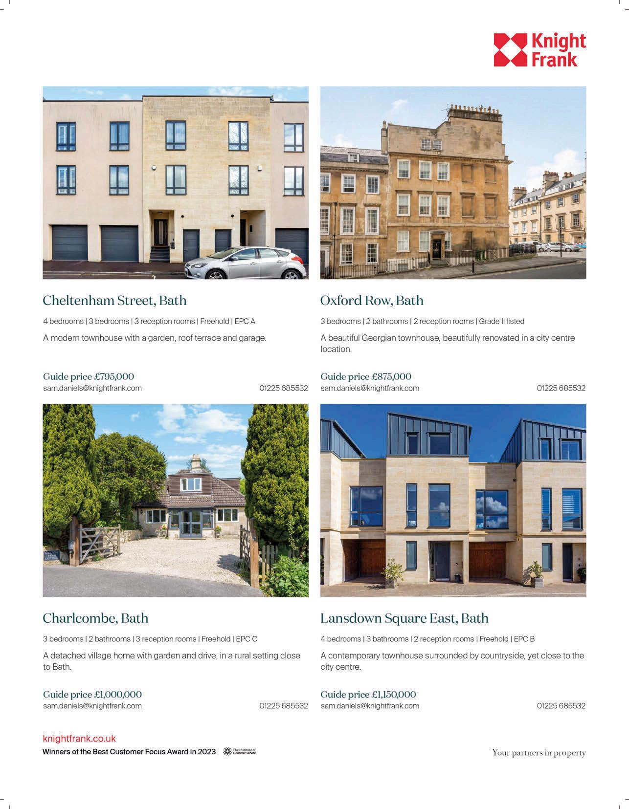 Production and distribution manager Sarah Kingston sarah.kingston@mediaclash.co.uk Deputy production manager Kirstie Howe kirstie.howe@mediaclash.co.uk Production designer Matt Gynn matt.gynn@mediaclash.co.uk / Gemma Bourne gemma.bourne@mediaclash.co.uk Chief executive Jane Ingham jane.ingham@mediaclash.co.uk Chief executive Greg Ingham greg.ingham@mediaclash.co.uk Bath Life MediaClash, Carriage Court, 22 Circus Mews, Bath, BA1 2PW. tel: 01225 475800; www. mediaclash.co.uk Instagram @TheMediaClash ©All rights reserved. May not be reproduced without written permission of MediaClash.