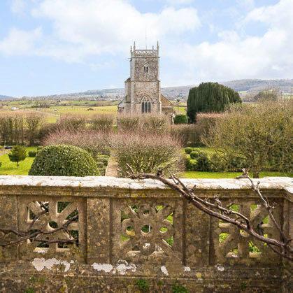 hanks to its sli htly ele ated position the iews from both house and rounds are a deli ht. o the north east you can gaze across the adjoining farmland to wooded hills yntesfield and elmont ill to the west o er its own land and parklike settin .