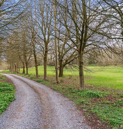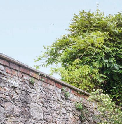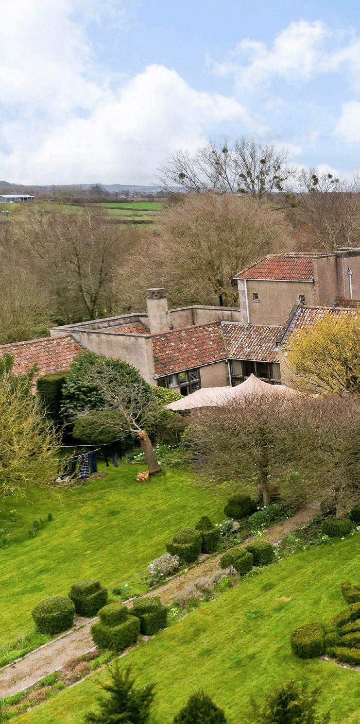 Chelvey Court’s entrance facade on the other, there are level lawns, an intricate topiary garden of box and yew, other taller topiary pieces, a water feature, and a private pathway to the church. A secluded sunken garden on this east side is reached by doors which open out from the round oor.