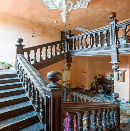 and newels –rises around a square stairwell, which begins on the ground oor and rises to the top. ake a minute to admire the hu e pendant of ornamental plasterwork abo e the stairwell; it’s hung there since the early s.