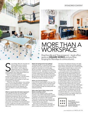 MORE THAN A WORKSPACE Dog friendly and ‘free prosecco’... book office space at SQUARE WORKS and you’ll be longing for Mondays to come around...