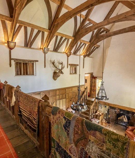 rom the library, another door leads you into the drawing room with more flagged floors, th-century oak beams and diamondpaned windows. Doors open to a sitting room; however, your eye is guaranteed to lead you in the other direction, beneath a timber archway which opens to a flagstoned hallway with th- and th-century panel screens, and on into the dining hall.