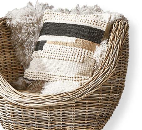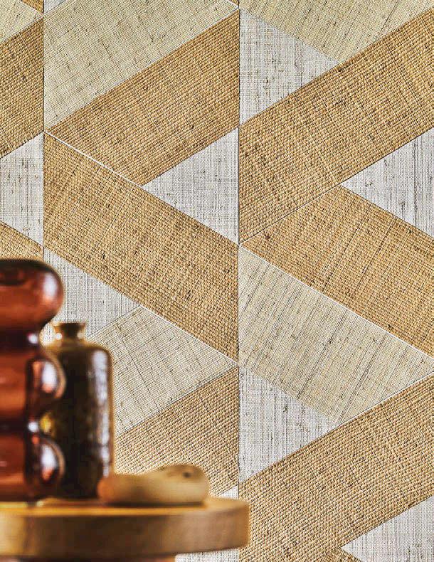 “We focus a lot on colour in interior design, and I think texture can often get overlooked, but it adds a real richness and a sense of luxury. One of my favourite suppliers, Casamance, is using three different types of raffia in their wall-coverings at the moment, which is great from an environmental standpoint, as obviously it’s all plant fibres as opposed to vinyl, and it looks and feels absolutely fantastic too. By weaving the raffia into different shapes and in a variety of warm, earthy colours they’re creating all these gorgeous geometric patterned wallpapers, almost like oversized close-up of weaving, or parquet. Although there’s a slightly 1970s quality to the effect, it lends itself to being styled in other more contemporary ways, too. Those natural, sandy tones look great with rumpled linens, bouclé upholstery fabrics and cable knits throws in soft warm greys, and even elements in darker, charcoal greys for a bit of definition and drama. It’s a soothing colour palette, which is perfect for hibernation and retreating from the world for a while.”