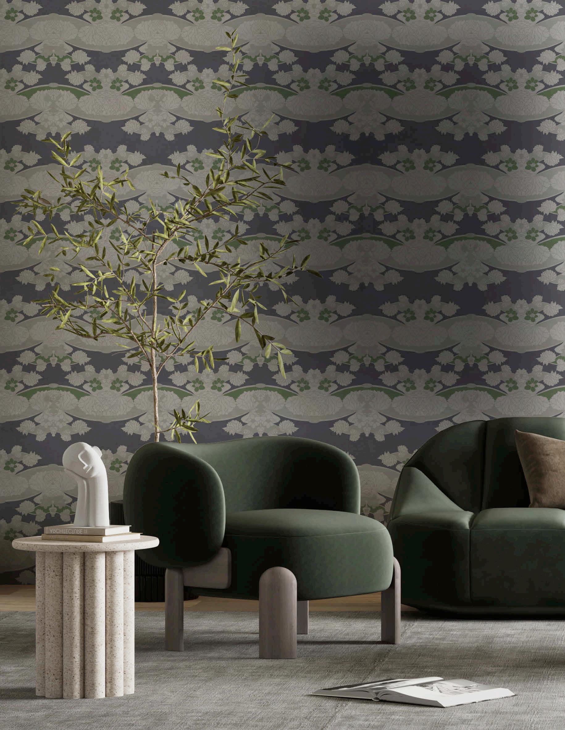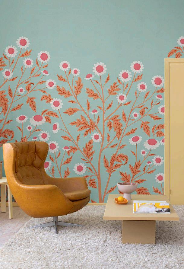 TOP: Rebel Walls’ Chamomile Summer, which despite its name is giving us autumn feels; BELOW: Forest by Little Greene