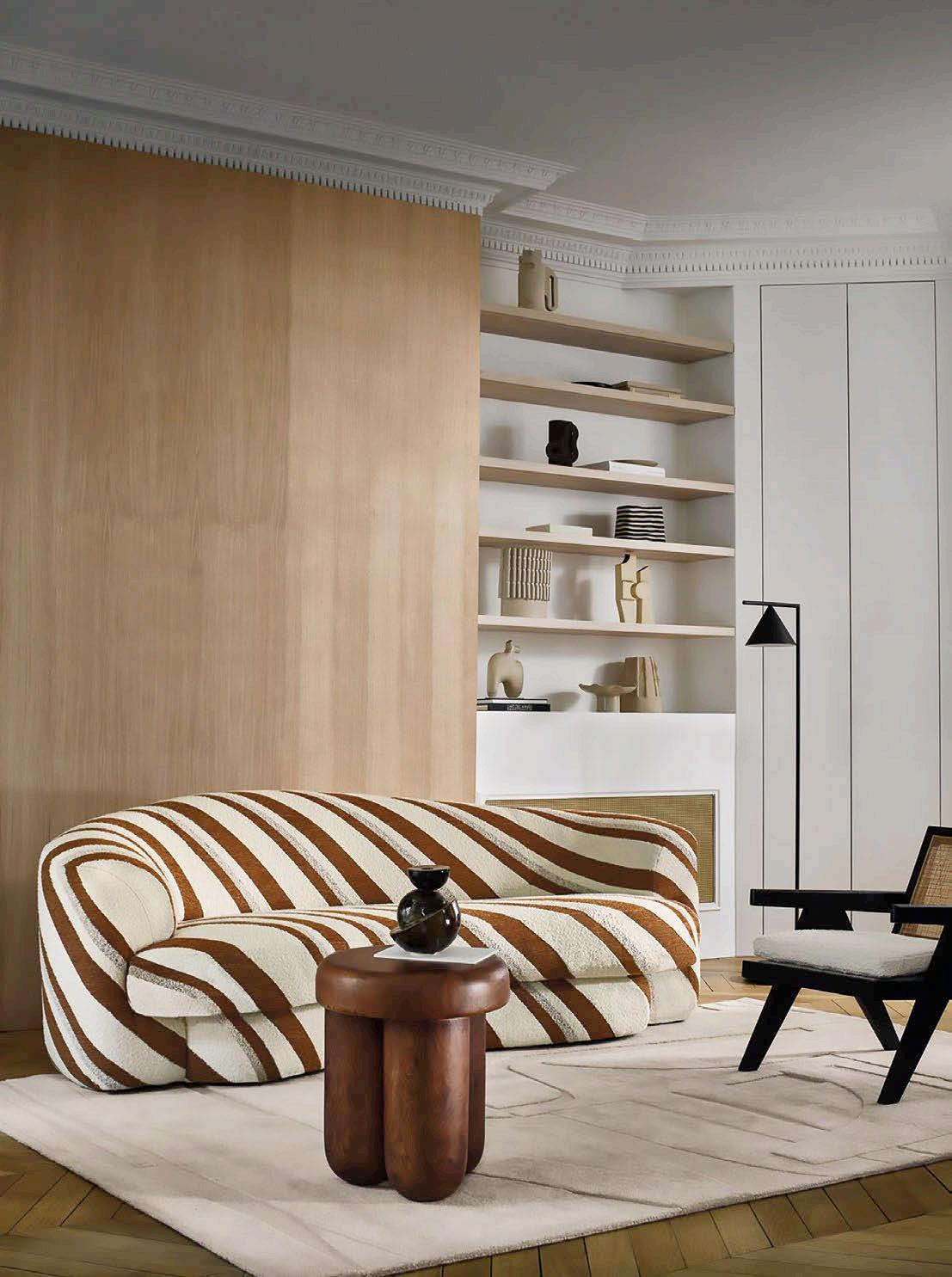 – neutrals are very much back. Greys, contrary to common belief, are not entirely passé – they’ve just become warmer, appearing as taupes and more earthy tones. Chocolatey browns are used for rich accents, being regarded as less dated than greens or blues. The latest shades sound so delicious that we’re not sure whether to paint them on our walls or pour them over ice-cream. “Little Greene’s new curated collection Sweet Treats consists of a palette of nine warm shades, including soft golds such as Madeleine and Bombolone, creamy caramels such as Galette and Affogato and indulgent rich tones such as Chocolate Colour and Granache, which bring warmth and comfort to your home,” says Finola Kelly of Nola Interiors. “Perfect in both contemporary and traditional settings, and working well in a colour-drenched room, complemented by deeper shades of brown for a sophisticated look, or add warm white accents for a more traditional one.”