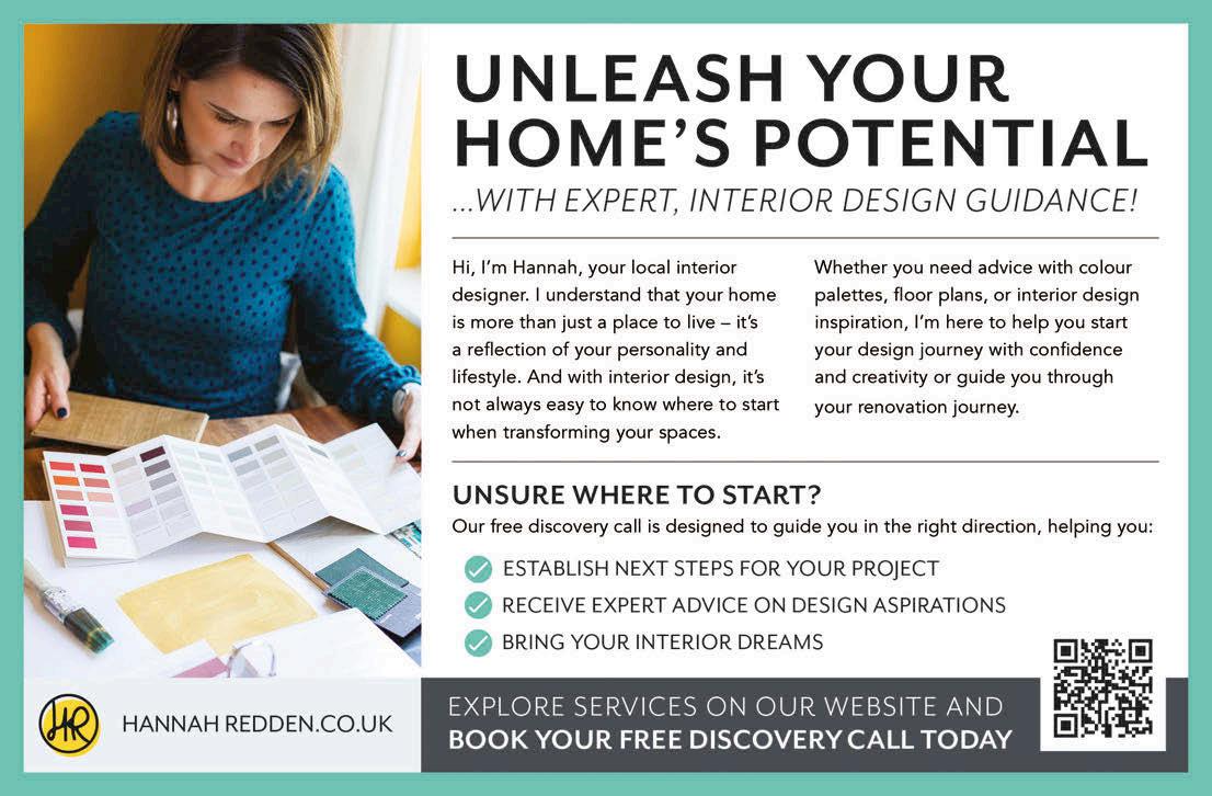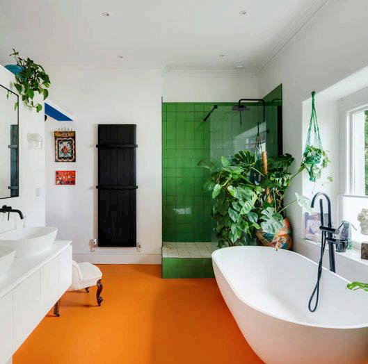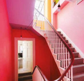 Let’s take the tour. You approach the end-ofterrace house through a side gate, where steps lead up to the front door and porch. From here, a door opens into the main hall, where an elegant balustraded staircase curves up to the landing above.