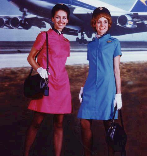 My first uniform was a mini, just above the knee, in raspberry pink, with a zip up the front and a little sassy belt at the back, that looked like a hairdressers’ overall,” says retired BOAC cabin crew member Daphne Oldfield.