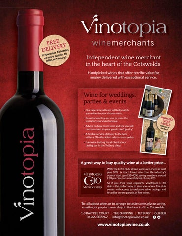 • A flexible service, delivery to the door within a 50 mile radius, sale or return policy. • Free wine tasting for all client at our tasting bar in the Tetbury shop.