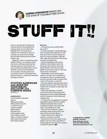StUFF IT! Darrin is chef director of Ashburton Cookery School, having started his culinary career at none other than Gidleigh Park. He has plenty of experience in teaching as well as in cooking, and used to be a college lecturer before taking up this position 13 years ago. Ashburton, which is located just down the M5 in Devon, is a cookery school with rooms, offering everything from half-day classes to short breaks and even professional qualifications. It uses ethically sourced, local ingredients on its courses, showing pupils how to put them to work in accessible and practical recipes – just like this meat-free aubergine number...