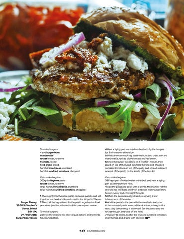 4 Heat a frying pan to a medium heat and fry the burgers for 3 minutes on either side. 5 Whilst they are cooking, toast the buns and dress with the mayonnaise, rocket, sliced tomato and red onion. 6 Once the burger is cooked let it rest for 1 minute, then place on top of the salad. Crumble the feta and chopped sundried tomatoes on top of the patty and spread a decent amount of the pesto on the inside of the bun lid.