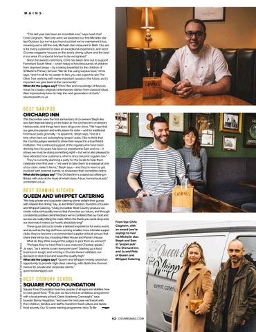 From top: Chris Cleghorn, with an award (we’re saying) to rival his Michelin star; Steph and Sam at ‘proper pub’ The Orchard Inn; and Jo and Pete of Queen and Whippet Catering