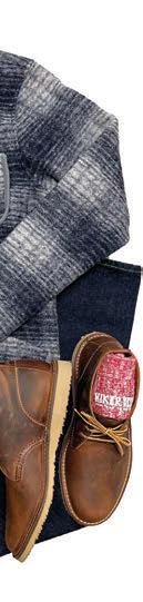 KESTIN NEIST WOOL OVERSHIRT, £165; USKEES SWEATSHIRT, £65; RED WING CHUKKA WEEKENDER, £229; AND EDWIN RED LISTED SELVEDGE JEANS, £170 r m it t re M r a r ade Cardiff www.unit17store.com