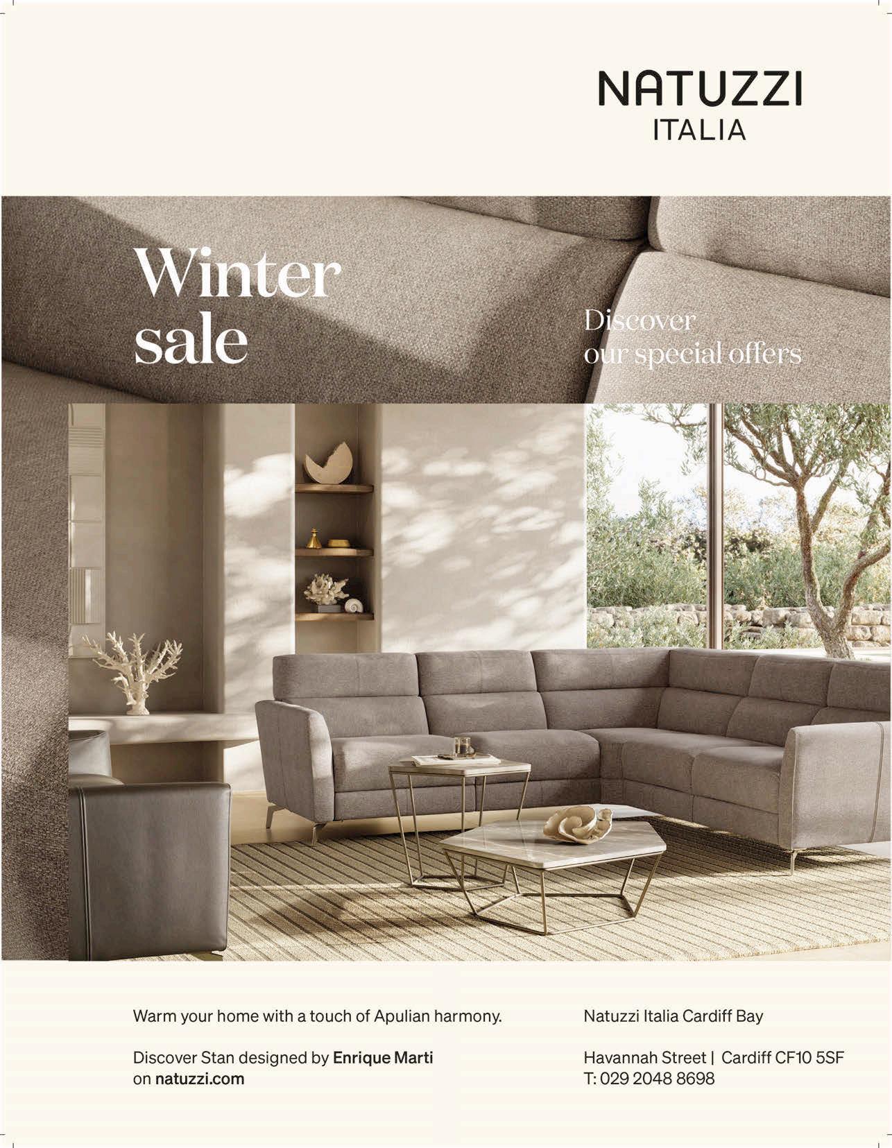 We have plenty more for you if home design isn’t your thing. If you’re a lover of fashion, turn to page 34 where Barry-based Imtayaz Qassim tells us about his clothing lines which are worn by the likes of Gareth Bale and Justin Bieber; if you’re into shopping, head over to page 36 for our pick of wellness treats; art lovers, turn to page 25 for a shock of colour from Albany Gallery’s latest exhibition; and comedy fans, get on over to page 66 to see our chat with Sara Pascoe ahead of her visit to St David’s Hall.