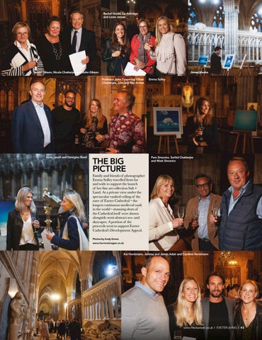 Family and friends of photographer Emma Solley travelled from far and wide to support the launch of her fine art collection Salt + Land. At a private view under the spectacular vaulted ceiling of the nave of Exeter Cathedral – the longest continuous medieval vault in the world – stunning shots of the Cathedral itself were shown alongside semi-abstract sea- and skyscapes. A portion of the proceeds went to support Exeter Cathedral’s Development Appeal. Photos by Andy Green www.harreraimages.co.uk