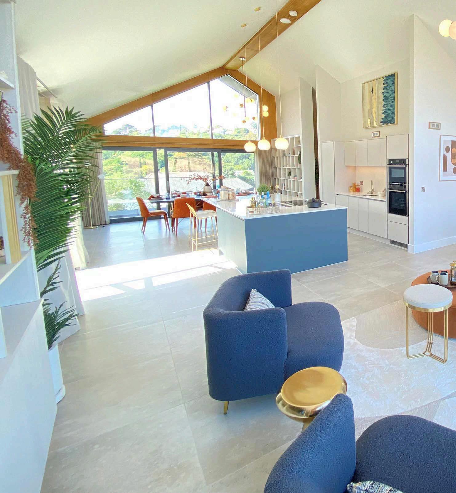 There are three house types in this development but all the new homes have the bedrooms situated on the ground oor, with open-planned interiors on the first oor; and as you may imagine, the design and d cor highlights the profusion of light and space on offer.