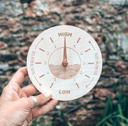 Tide clocks! Once set to correspond to the tide times of your local beach, they count down how many hours are left until high/tide at any given time. They are very useful for rock poolers, surfers, sailors, beach walkers or anyone who leaves to spend time on or by the sea.