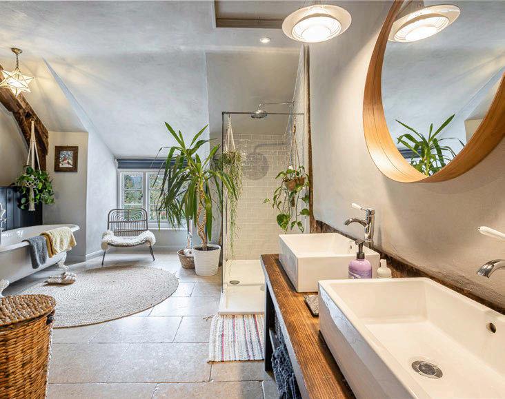 The rst floor landing is a real feature of the property with vaulted ceiling and e posed trusses. This wonderful, light space opens into four double bedrooms, a delightful reading nook o ce and me anine attic room. The principle bedroom offers a bright space with solid wood floors and double aspect windows to the front and rear affording far-reaching views. There is a wonderful, arched, original wooden window which has been retained and is a really special feature to this room. The large family bathroom is beautifully nished with separate shower, tiled floors and claw-footed bath. tepping outside, the property is encircled on three sides by its grounds and gardens including a large lake surrounded by poplars dating back to the time of the monastery and being fed by a tributary of the River Culm. There is a paddock area, woodland which rises behind the property with stunning views across farmland with the avenue of poplars offering a lovely feature to the grounds. Throughout the grounds are charming picnic spots which make the most of the e ceptional views surrounding the property. n