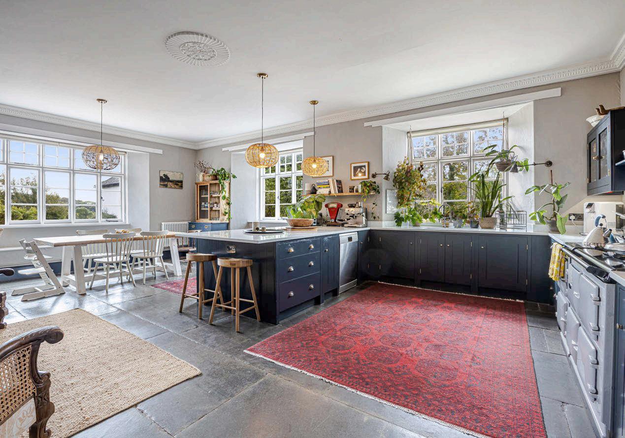 Accessed from a gravelled courtyard area, the property offers an entrance into a boot room with stone, tiled floor and storage leading into a fantastic, light reception room, with its solid wood floors and a Chippendale cupboard with built-in shelving offering e cellent storage space. The generous and beautifully bright kitchen has been tastefully designed, enjoying impressive windows to two aspects flooding the space with natural light. The solid wood kitchen provides plenty of cupboard space along with an island breakfast bar and electric Aga. There is space for a large dining table perfect for family life and entertaining alongside original flagstone floors and replace with woodburner making this room the hub of the home.