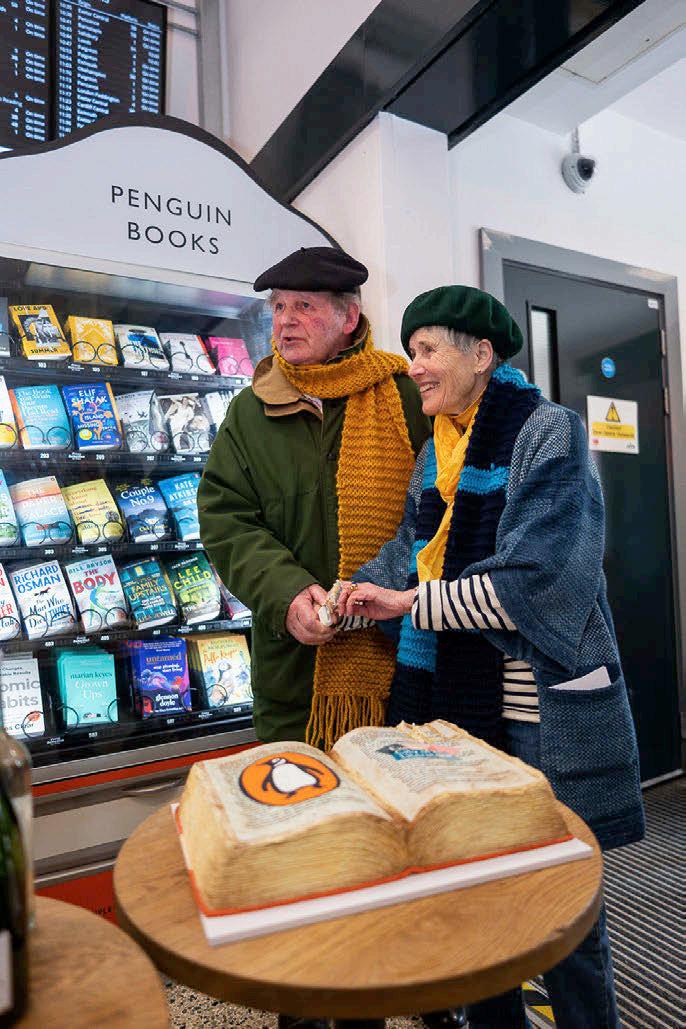 The newly arrived Penguin vending machine at St Davids train station was officially launched recently by none other than legendary author Michael Morpurgo and his wife Clare. As the daughter of Penguin founder Sir Allen Lane, Clare Morpurgo was guest of honour and wielder of blades, cutting the ribbon to officially open the vending machine, and ceremonially slicing the tastiest book in the world.