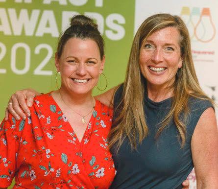 Bethan Meyrick and Sofia Lenzi, with Olympian Jo Pavey