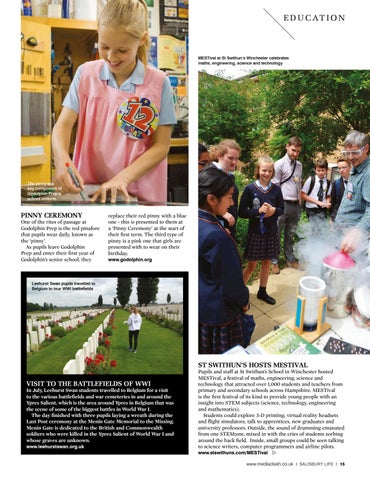 Pupils and staff at St Swithun’s School in Winchester hosted MESTival, a festival of maths, engineering, science and technology that attracted over 1,000 students and teachers from primary and secondary schools across Hampshire. MESTival is the first festival of its kind to provide young people with an insight into STEM subjects (science, technology, engineering and mathematics). Students could explore 3-D printing, virtual reality headsets and flight simulators, talk to apprentices, new graduates and university professors. Outside, the sound of drumming emanated from one STEMzone, mixed in with the cries of students zorbing around the back field. Inside, small groups could be seen talking to science writers, computer programmers and airline pilots. www.stswithuns.com/MESTival w www.mediaclash.co.uk I SALISBURY LIFE I 15