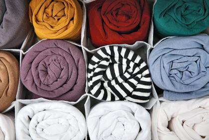 Store your shoes with one from each pair facing in opposite directions to help maximize space. Put them in shelving or cubbies or get a shoe rack to keep them organized. There are also shoe storage solutions that can be mounted to your door or wall, angling downward to give you a clear view of what’s on the rack or