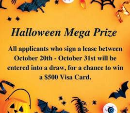 TOWERS REALTY GROUP residents receive a Towers Bene ts Card which gets them great discounts at dozens of local businesses. For information on all of our partners, visit www.TowersRealty.ca/discounts. Already a Towers Resident? Know someone who is looking for a great new place to live? Ask about our referral bonus program. 1 & 2 BEDROOM SUITES AVAILABLE PHONE 204.960.3807 1055 Powers Street 3D TOUR AVAILABLE ONLINE Pet Friendly ONE MONTH FREE MOVE-IN BONUS 172 Edmonton Street 1 BEDROOM SUITES AVAILABLE PHONE 204.960.3807 3D TOUR AVAILABLE ONLINE No pets, no smoking LADYWOOD ONE MONTH FREE MOVE-IN BONUS Carillon Apartments 301-305 Mandalay Drive 1, 2 & 3 BEDROOM UNITS AVAILABLE PHONE 204.898.6534 $500 MOVE-IN BONUS 3D TOUR AVAILABLE ONLINE 1777 St. Mary’s Road 2 BEDROOM UNITS AVAILABLE PHONE 204.291.4539 3D TOUR AVAILABLE ONLINE Pet Friendly 4Rent.ca October 28–November 11, 2022