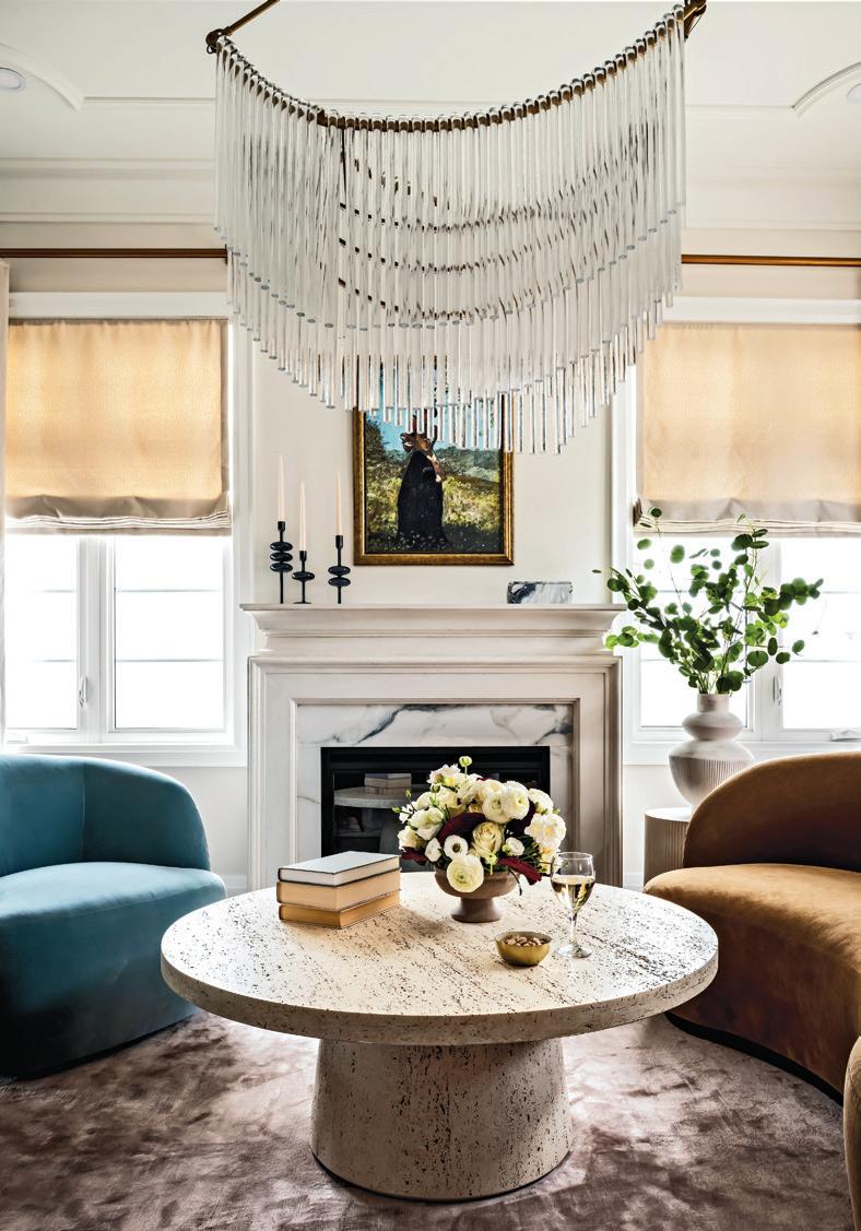 A sculptural glass chandelier for the living room became the centrepiece of our vision