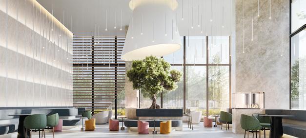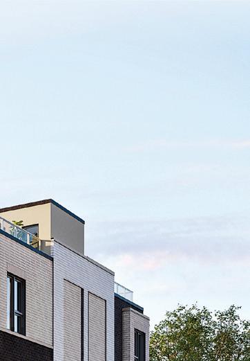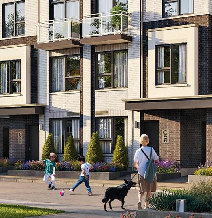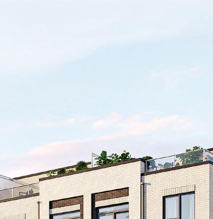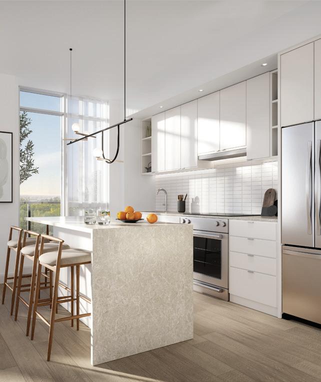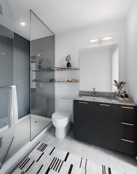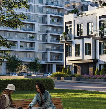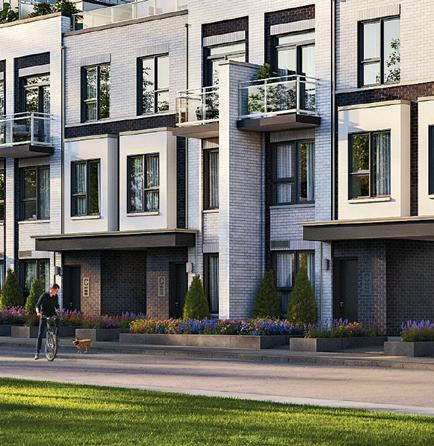 The homes feature oversized windows, as current technology allows for larger-than-usual window-towall ratios. These generous openings are complimented by 10-ft. main floor, nine-ft. upper level and high basement ceiling heights to enhance natural light, improve ventilation and brighten the interior. Future-proofing inclusions such as EV charging plug, solar panel ready rough-in, tripleglazed windows that help with energy savings, and heating and cooling costs, and towards achieving a lower carbon footprint.