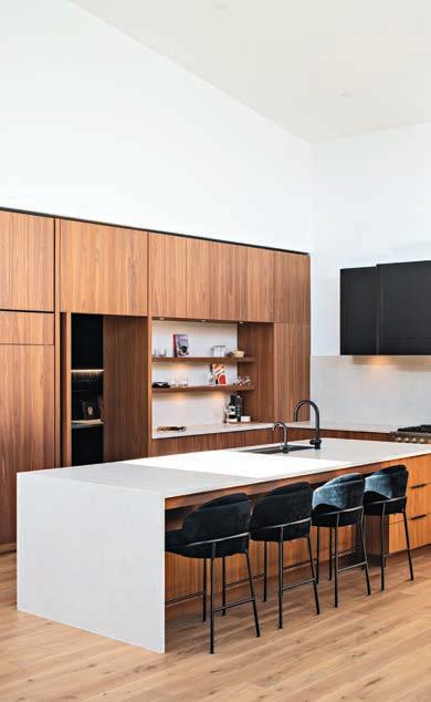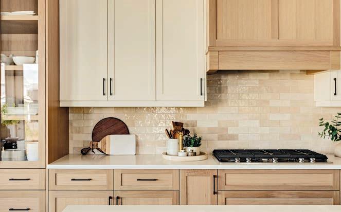 materials. “Rich wood tones, stone surfaces and earthy textures are being used in abundance to create spaces that feel grounded, welcoming and timeless,” says Richards.