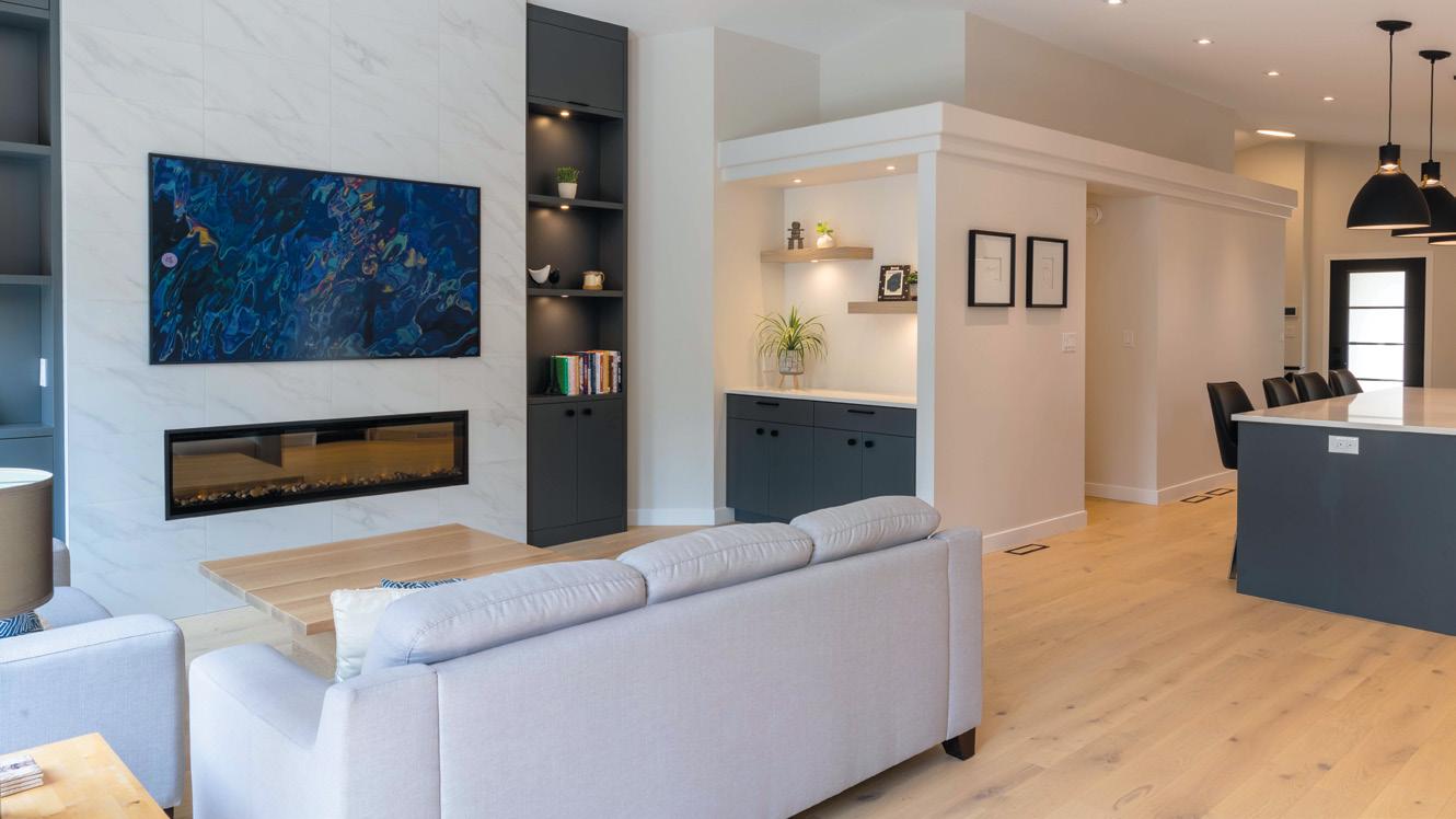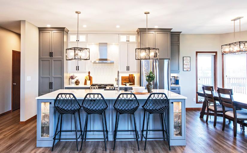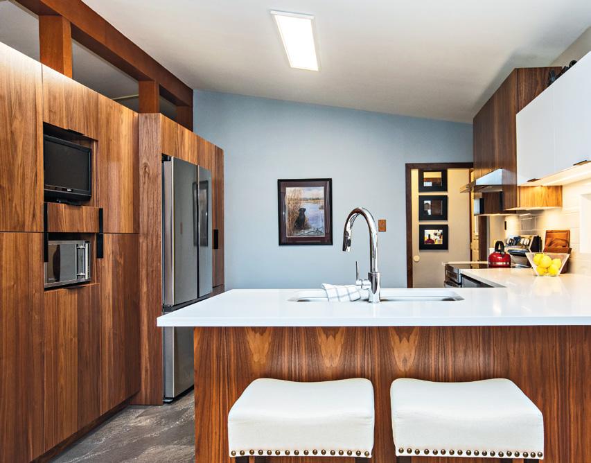 Sometimes what is really needed is a new floor plan. The feature on page 56 describes a renovated house in Island Lakes that was built in 2003. Originally, the main floor was subdivided with a wall between the kitchen and family room and between the dining room and living room. Removing the wall streamlined the space and took advantage of the vaulted ceiling’s dramatic effect. It also allowed for a much larger kitchen island, which is perfect for their family and for entertaining.