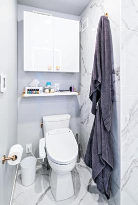 Another wall was re-configured by merging a second bedroom that was infrequently used to create a spacious ensuite that Janine lists as ‘a dream come true’. Features include a suspended vanity with double sinks, a massive walk-in shower with heated floor, and a double closet.