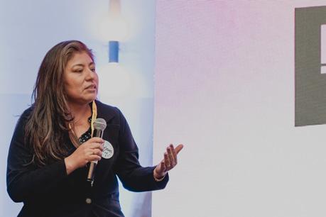 Rosa Flores, supervisora de Telecomunicaciones de Cobra Perú (empresa contratista de Movistar), en el panel de equidad de género en tecnología en la Premiación de Laboratoria.