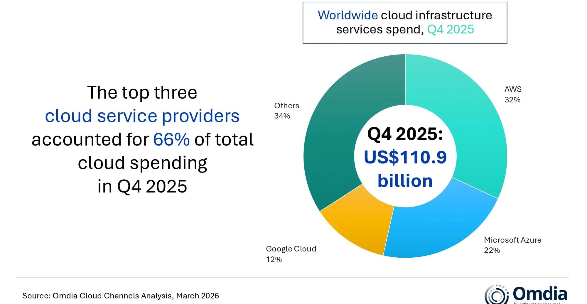 Según Omdia, el gasto global en servicios de infraestructura en la nube alcanzó los 110.900 millones de dólares estadounidenses en el cuarto trimestre de 2025, lo que refleja un crecimiento interanual del 29%.