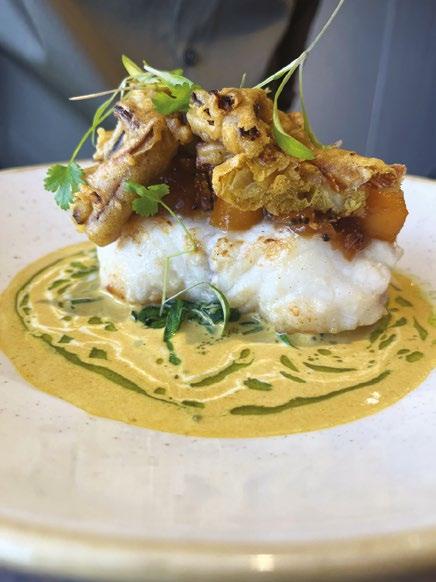 any monk’s beard or samphire, either would really compliment this dish. Pour a little sauce around the fish and serve immediately.