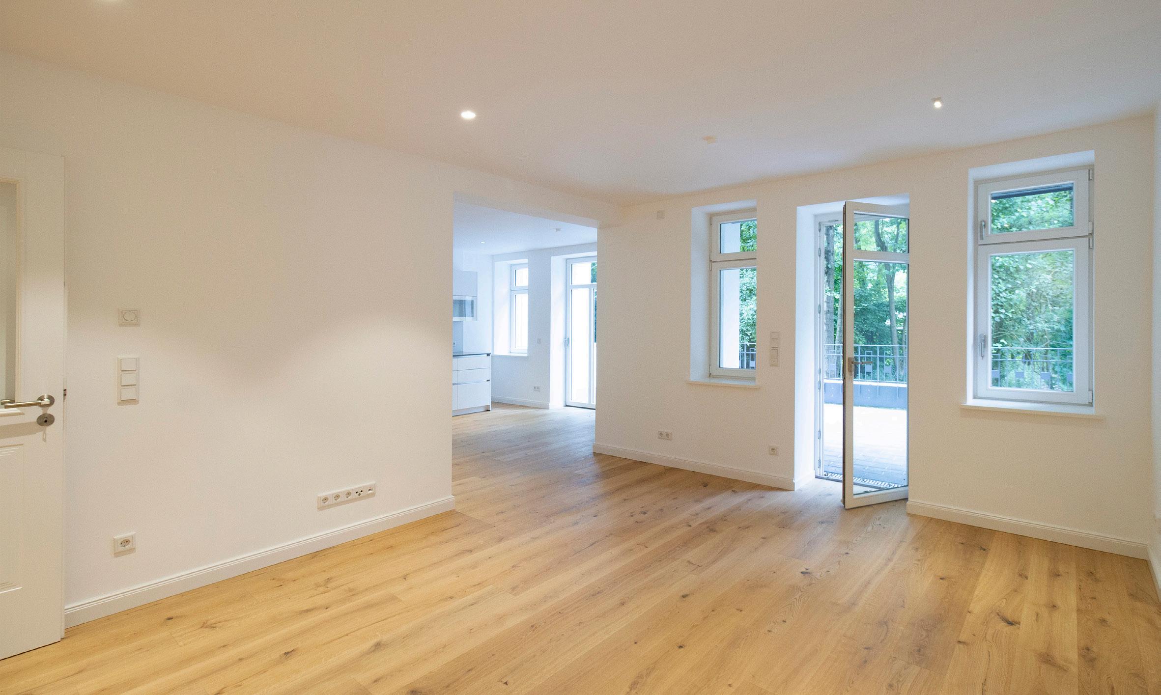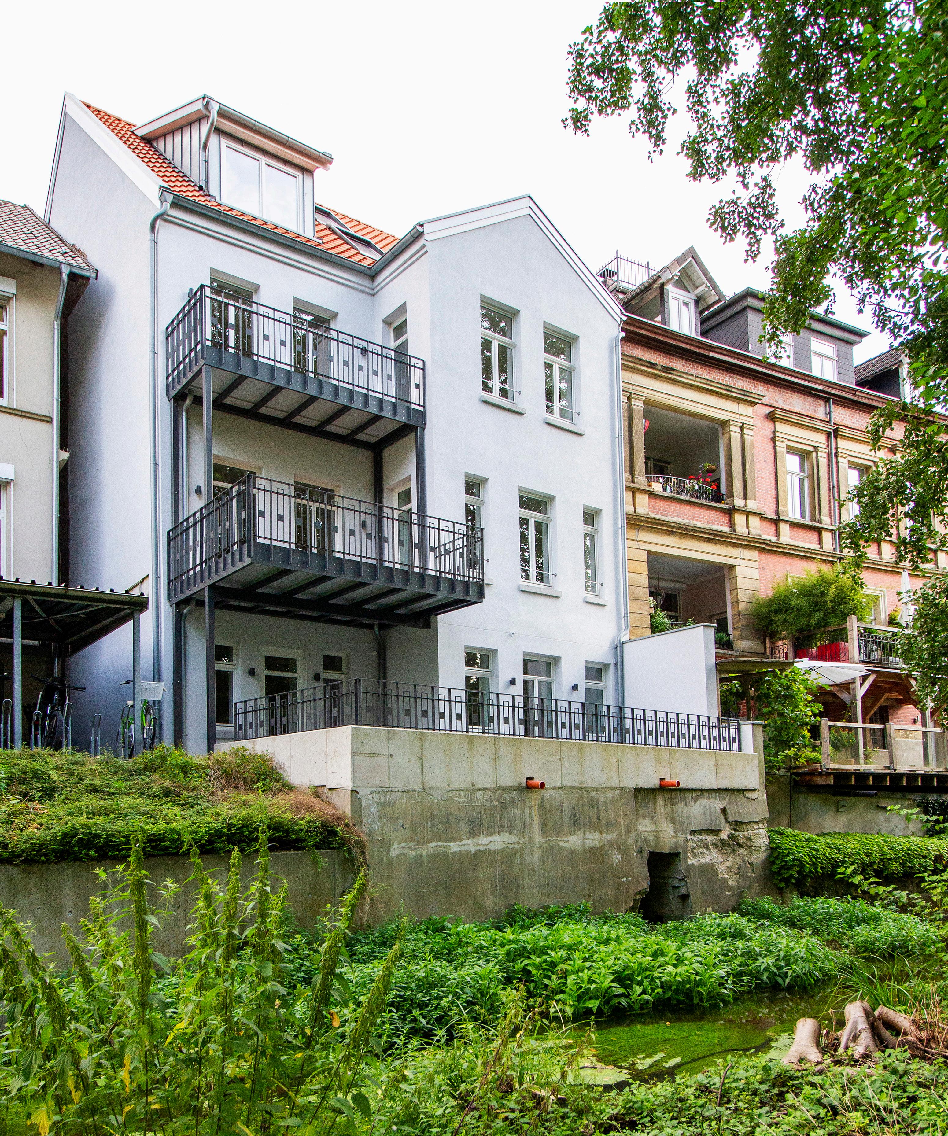 malschutzes das äußere Erscheinungsbild des Hauses erhalten blieb, wurde im Innenbereich alles getan, um Wohnraum zu schaffen, der den technischen, energetischen und Komfortansprüchen der heutigen Zeit entspricht. Das Treppenhaus wurde erneuert, ein Aufzug ergänzt. Und die drei Wohnungen