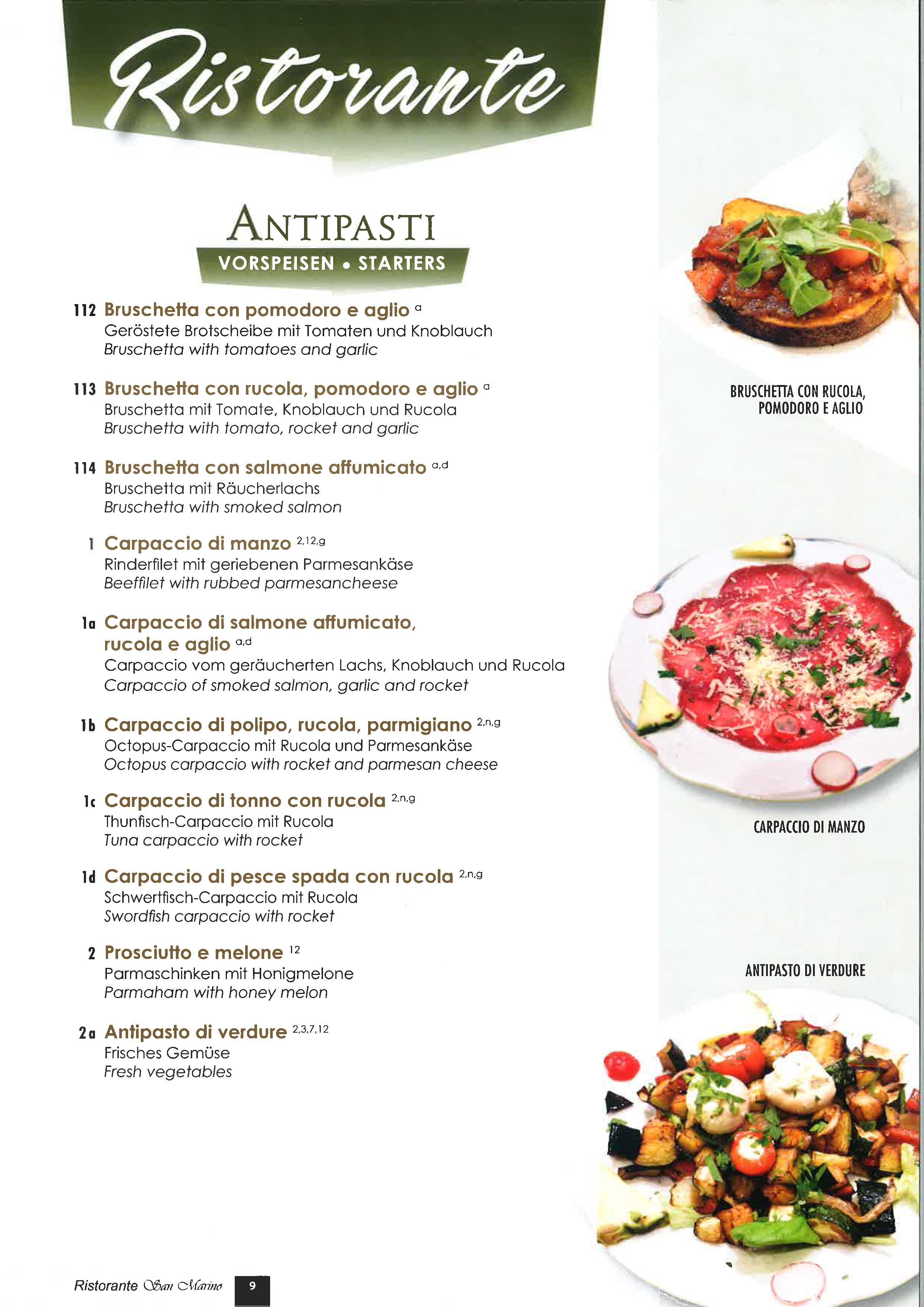 San Marino Speisekarte (Preislos)