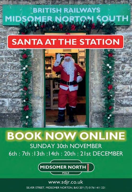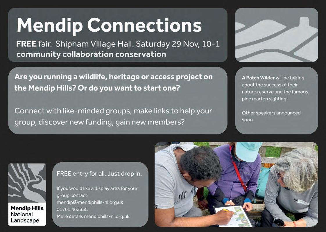 Camelot Area u3a talk by Andy Hamilton, ‘First Time Forager’ 2.30pm Caryford Hall, Castle Cary BA7 7JJ. Non-members welcome, £3 incl refreshments. Details www.camelot-area.u3asite.uk Mendip Society talk on the work of Secret World Wildlife Rescue and Christmas social, incl refreshments, 6.45 for 7pm Bishop Sutton Village Hall. Members free, non-members £5. Details: www.themendipsociety.org.uk/walksand-events