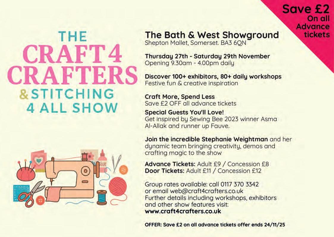 Craft4Crafters and Stitching4All Show, Bath and West Showground, 9.30-4pm. Details: