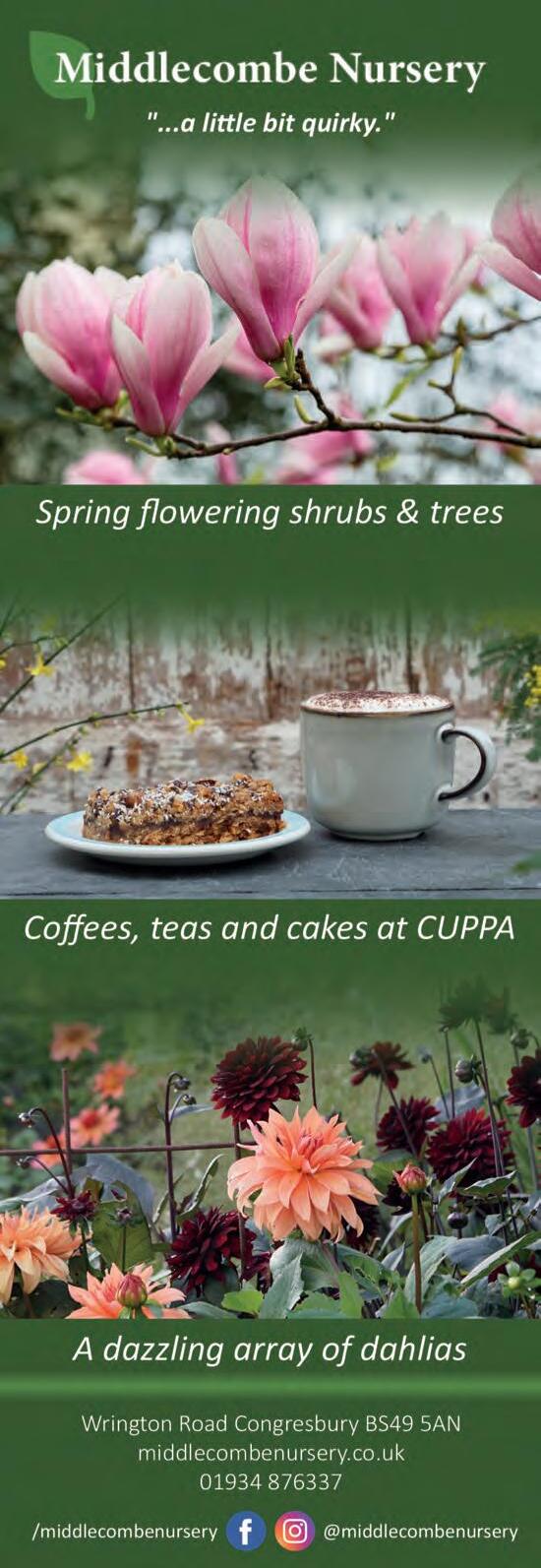 West Mendip Walkers moderate 10m circular walk, 9.30am from Bell Inn Evercreech BA4 6HY. Details: www.mendipramblers.co.uk Wells Garden Club talk by Sally Morgan: ‘The Climate Change Garden’ 7:30pm Town Hall. Details: www.wellsgarden.club