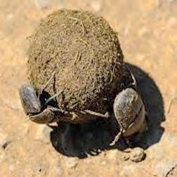 The roller beetle lives in the warmer regions of the world. These three descriptive words describe how the beetles use the dung they find.