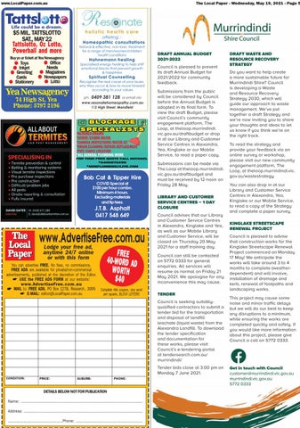 You can advertise FREE. No fees, no commissions. FREE ADS are available for private/non-commercial advertisements, published at the discretion of the Editor. ☛ USE the FREE ADS FORM at our website: www.AdvertiseFree.com.au ☛ MAIL to: FREE ADS, PO Box 1278, Research, 3095 ☛ E-MAIL: editor@LocalPaper.com.au