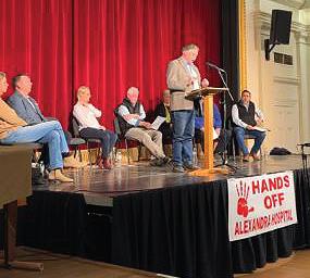 Hospital public meeting at the Alexandra Shire Hall non-disclosure agreements, with speculation high about 30 per cent budget cuts to local health services.