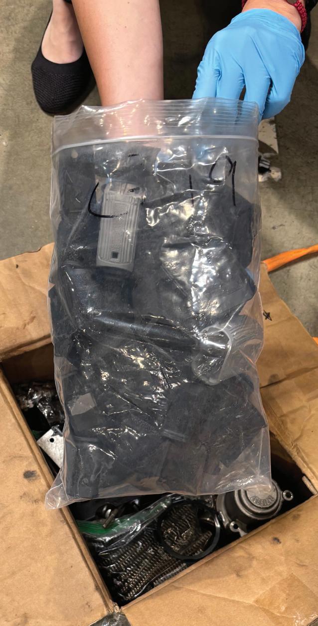 Law enforcement became aware of the importation attempts in June. A consignment containing an engine block and two engine transmissions was identified as concealing more than 150 Glock style firearm parts, including slides, barrels and receivers.