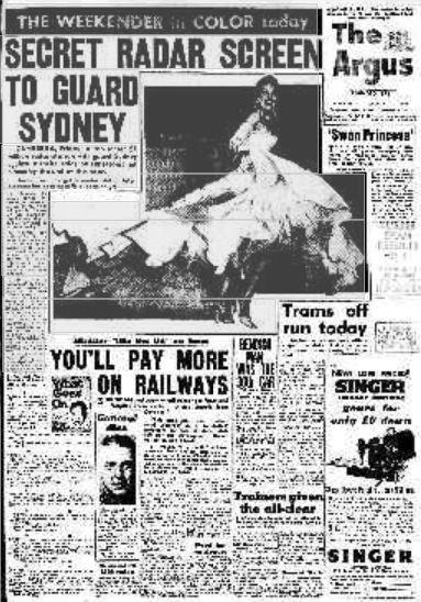■ A top secret £1 million radar station will guard Sydney against surprise raids by supersonic jet planes by the end of this year. Melbourne may get a similar station later, but there has been no official decision yet.