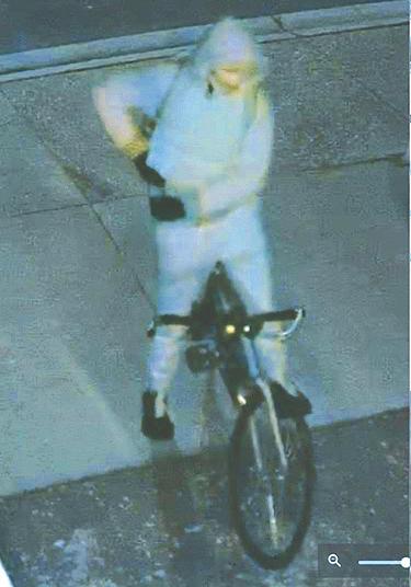 The offender fled on a light-coloured bicycle, east through a residential carpark.