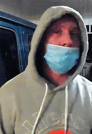 The first offender is perceived as Caucasian, approximately 30 years old with a medium build and was wearing white Nike shoes, black pants, a grey ‘Ellesse’ hoodie, black gloves and a blue surgical face mask.