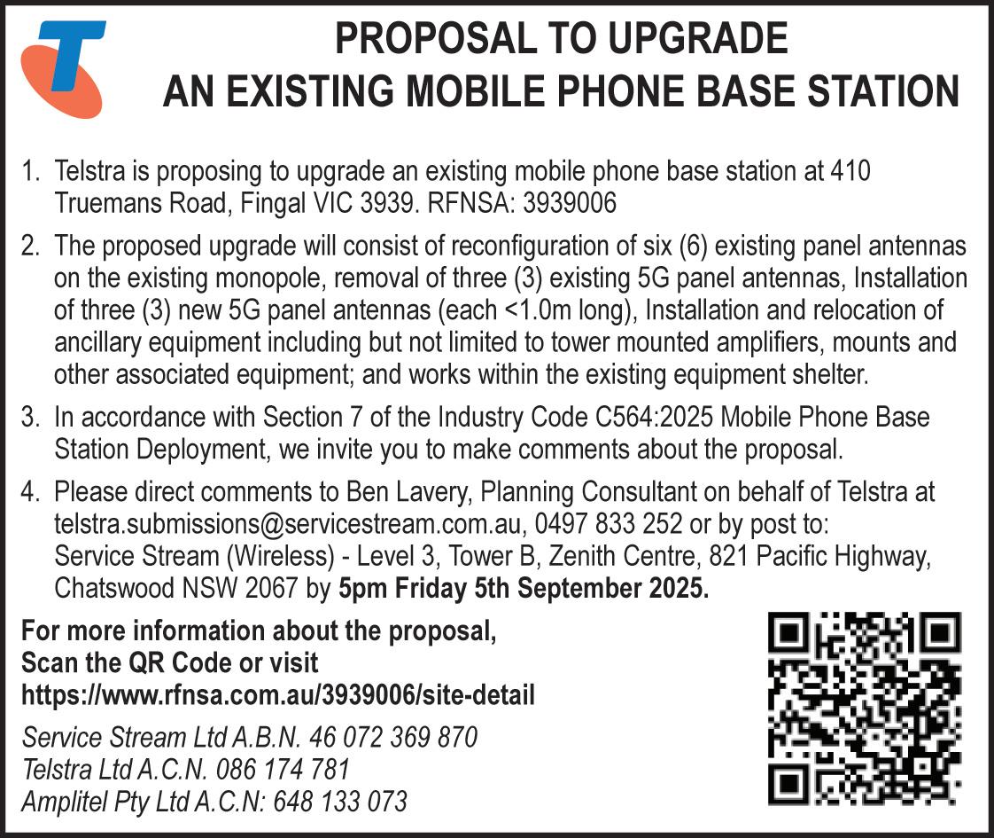 ■ Assignment of Telstra Mobile Tower Lease to Council with current rental of $33,000 per annum. Consultation closes on September 21.